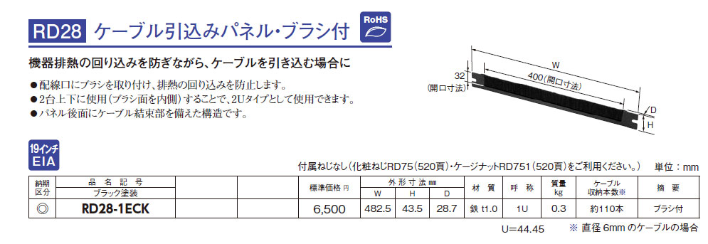 RD28-1ECK ケーブル引込みパネル・ブラシ付