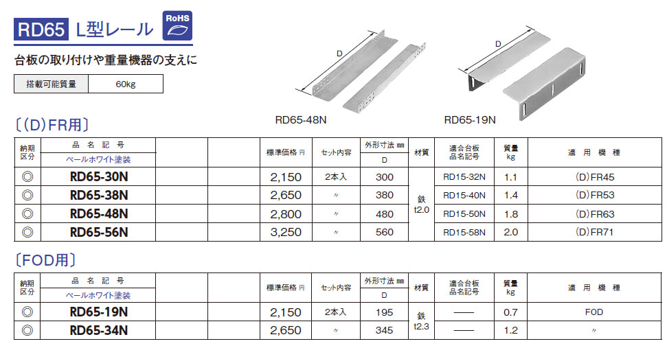 RD65-19N L型レール・簡易取付タイプ〔FOD用〕