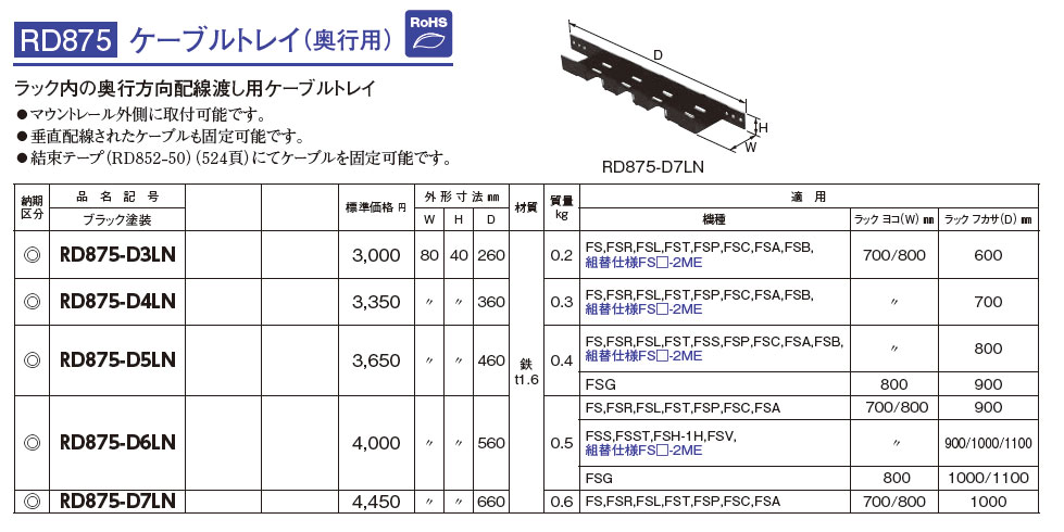 RD875-D4LN ケーブルトレイ(奥行用)