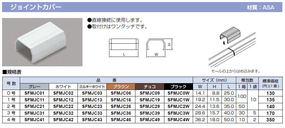 SFMJC01 ニューエフモール ジョイントカバー 0号 1袋(10個入)