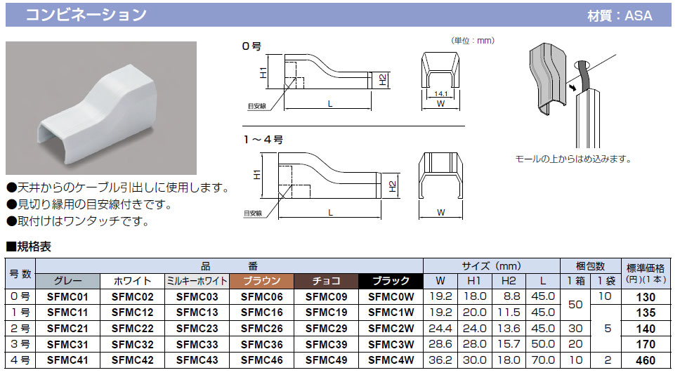 - 電設資材 > マサル工業 > 壁面用配線モール > テープ付ニュー・エフモール > コンビネーション