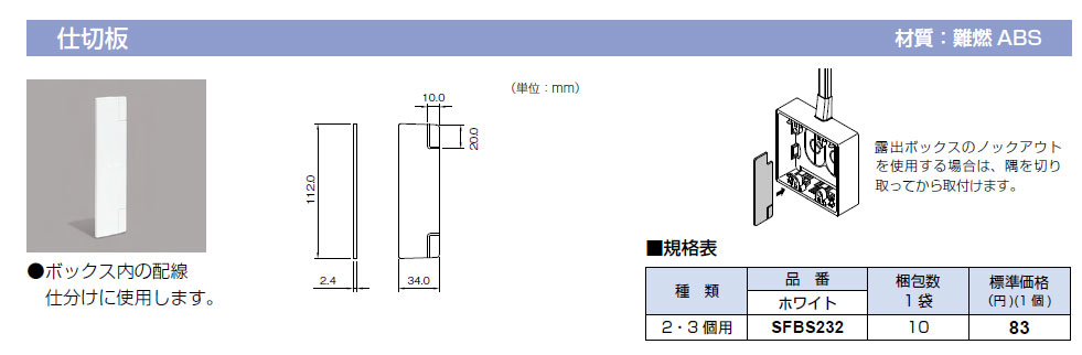 SFBS232 ニューエフモール 仕切板 1袋(10個入)