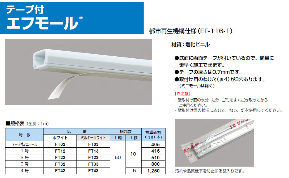 FT42 テープ付エフモール1m 4号 1袋(5本入)
