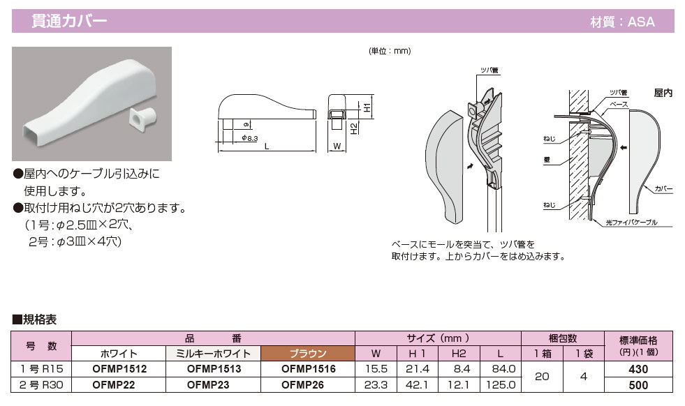 OFMP22 オプトモール 貫通カバー 2号 1袋(4個入)