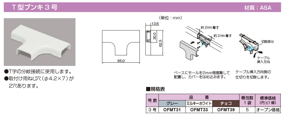 OFMT31 屋外用オプトモール3号 T型ブンキ 1袋(5個入)