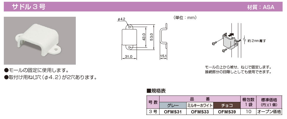 OFMS31 屋外用オプトモール3号 サドル 1袋(10個入)