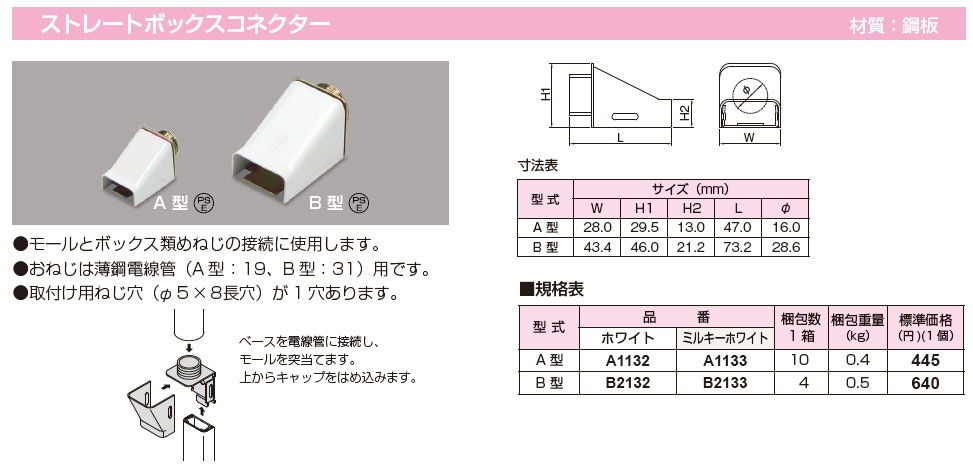 B2132 メタルエフモールB型 ストレートボックスコネクタ 1箱(4個入)