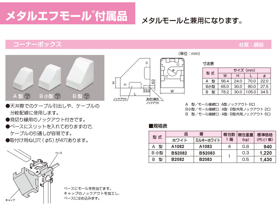 C3082 メタルモールC型 コーナーボックス 1箱(1個入)