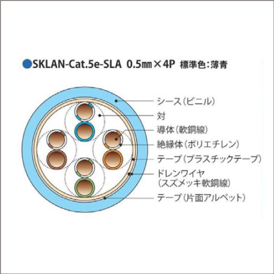 LANケーブルカテゴリー 5e シールド付 300m 外径 約6.6mm SKLAN-Cat.5e-SLA