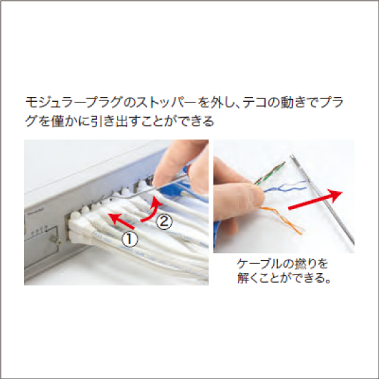 ● 密集状態のモジュラープラグを簡単に引き抜くことができる
