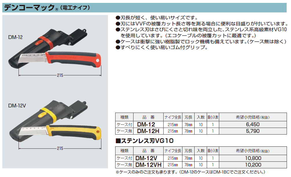 DM-12VH デンコーマック(電工ナイフ)ステンレス刃VG10