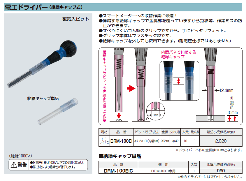 DRM-100EIC 電工ドライバー(絶縁キャップ式)絶縁キャップ単品