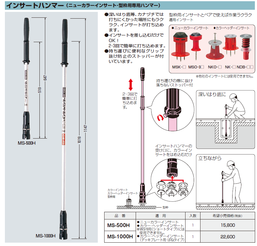MS-1000H インサートハンマー(ニューカラーインサート・型枠用専用ハンマー)