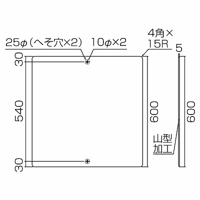 メーカー:日本緑十字社 サイズ 600mm角×1mm 材質 スチール 仕様 10mmφ穴×2(へそ穴)  山型