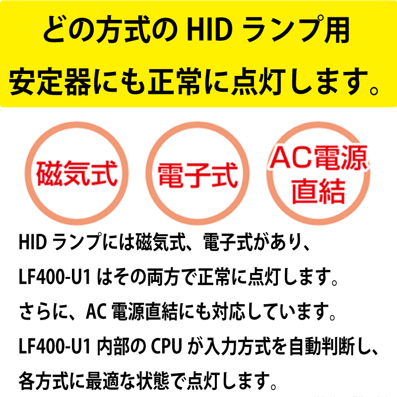 - 磁気式・電子式安定器、AC電源直結方式に対応(入力自動判別):contentReference[oaicite:4]{index=4}
