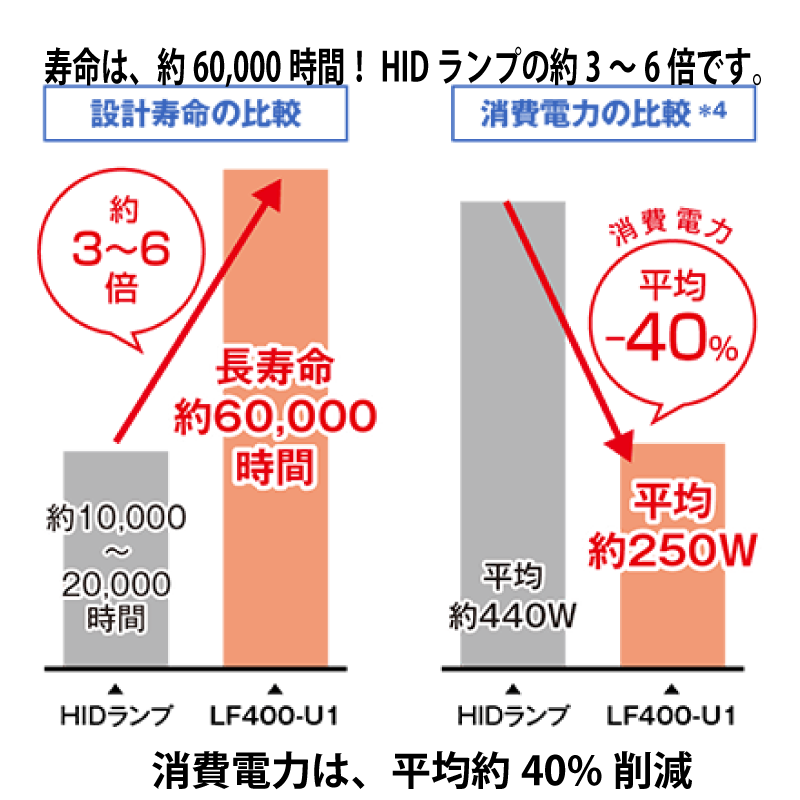 - 水銀灯(HIDランプ400 W相当)の明るさをLEDで実現:contentReference[oaicite:3]{index=3}