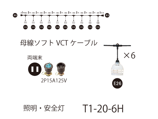 | T1-20-6H | 20 | 2.0sq-2C | 0.2 | 1.25sq-2C | 6 | 6 | ゴム防水2P15A |