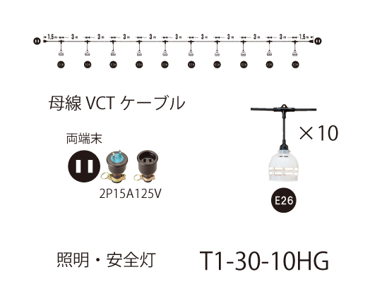 | T1-30-10HG | 30 | 2.0sq-2C | 0.2 | 1.25sq-2C | 10 | 10 | ゴム防水2P15A |