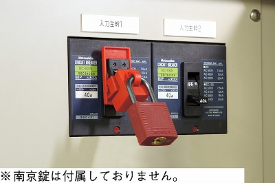 作業中に他の人がブレーカーを操作できないようにロックするための道具です。