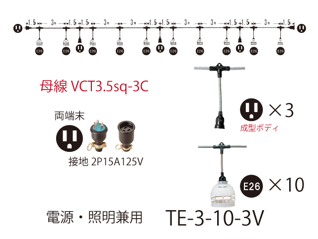 E26口金の電球、LED電球を取付でき、電源も取り出すことができます。