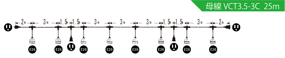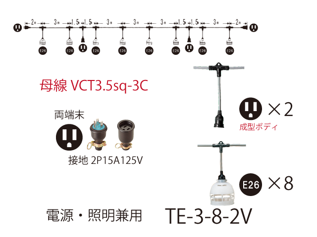 間隔、長さ、ガードの数、電源取り出し数等、使用状況に合わせて作成することが可能です。