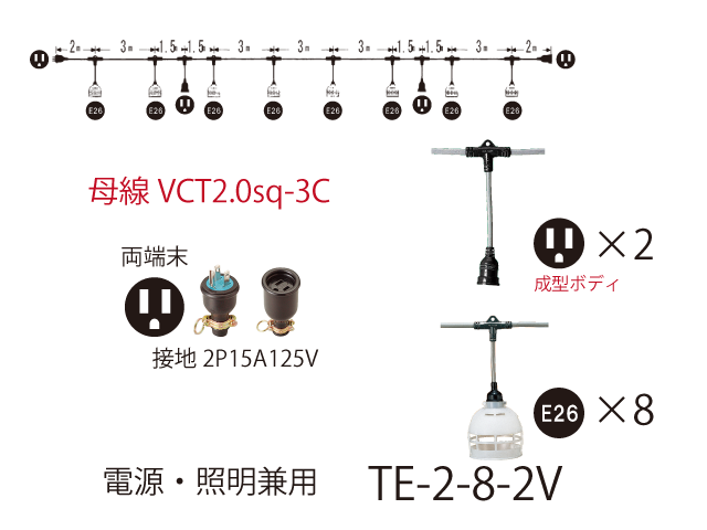 E26口金の電球、LED電球を取付でき、電源も取り出すことができます。