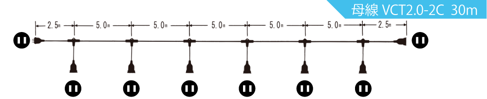 TEVタイプは引出電源が一体成型で100V仕様の分岐ケーブルです