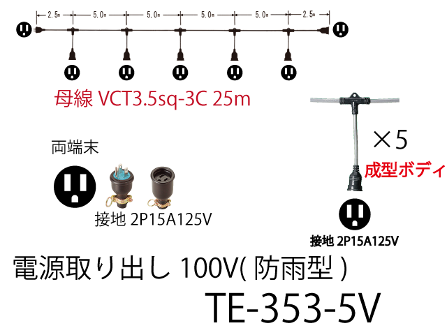 | TE-353-5V | 25 | 3.5sq-3C | 0.25 | 2.0sq-3C | 5 | 0 | ゴム防水接地2P15A | |