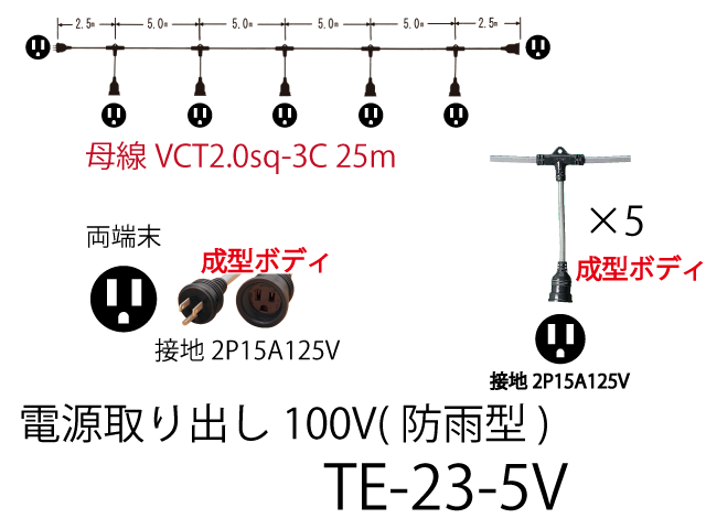 - 電源取り出し100V一体成型防水タイプ TE-23-5V