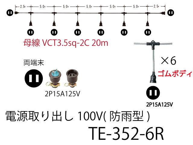 | TE-352-6R | 30 | 3.5sq-2C | 0.25 | 1.25sq-2C | 6 | 0 | ゴム防水2P15A | |