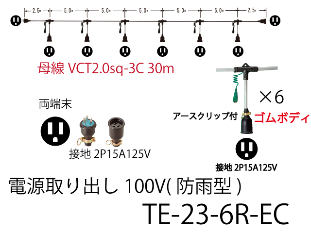 | TE-23-6R | 30 | 2.0sq-3C | 0.25 | 2.0sq-3C | 6 | 0 | ゴム防水接地2P15A | |