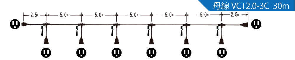 間隔、長さ、ガードの数、電源取り出し数等、使用状況に合わせて作成することが可能です。