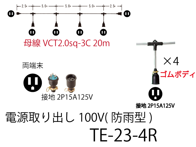 | TE-23-4R | 20 | 2.0sq-3C | 0.25 | 2.0sq-3C | 4 | 0 | ゴム防水接地2P15A | |