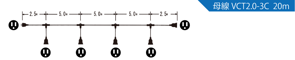 | 長さ(m) | 使用電線 | 長さ(m) | 使用電線 | (数) | 標準 プラグ 形状 |