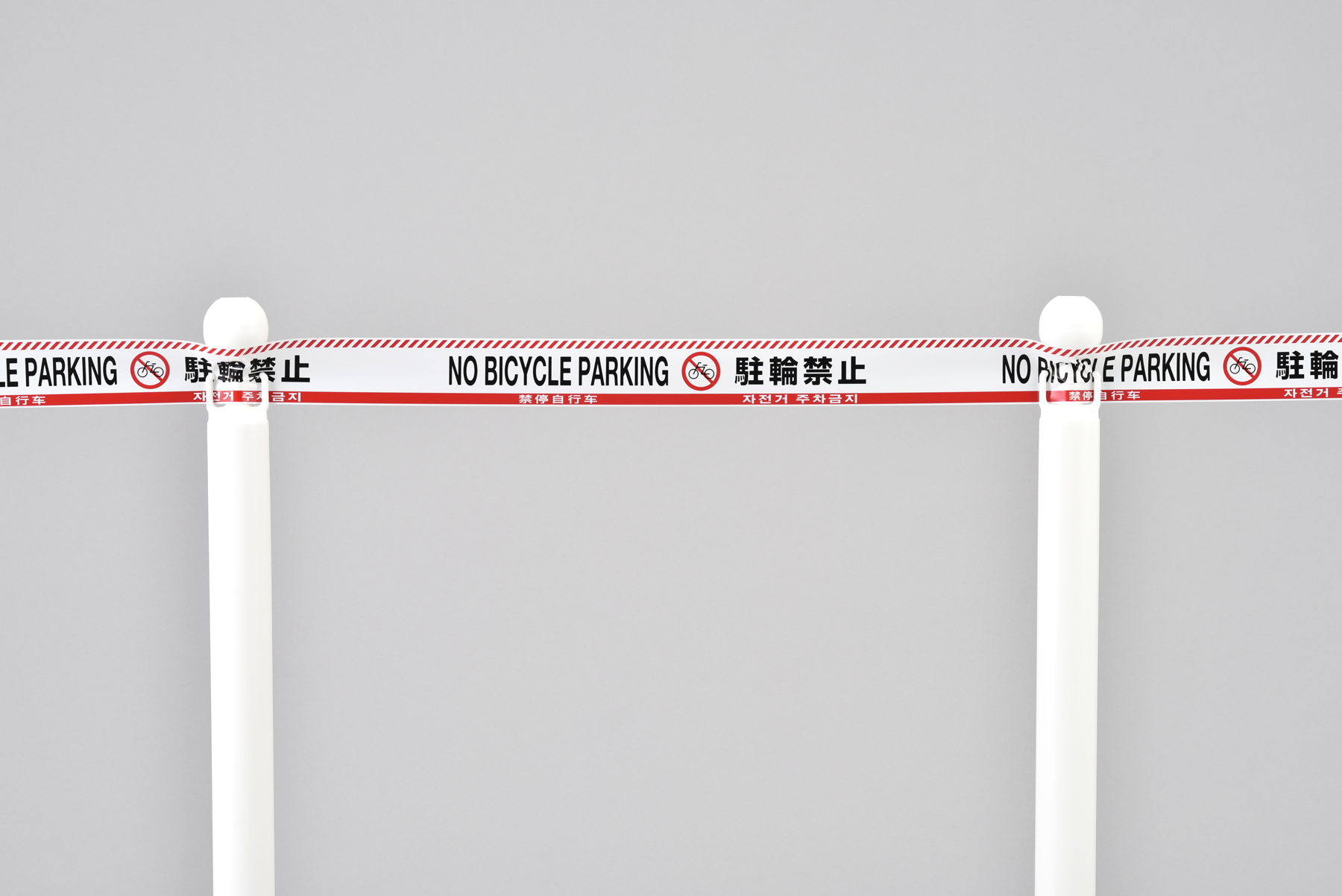 非粘着のテープです。柱・フェンス・金属製バリケード等に結び付けてご使用ください。