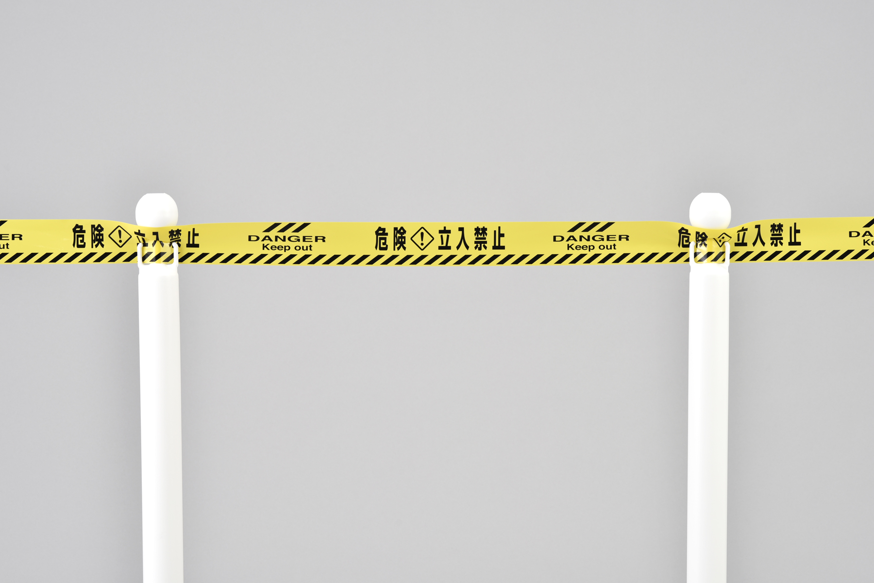非粘着のテープです。柱・フェンス・金属製バリケード等に結び付けてご使用ください。