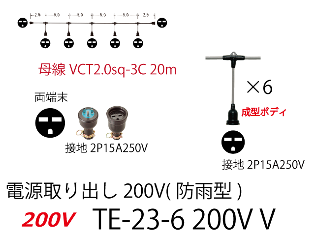 - 電源取り出し200V一体成型防水タイプ TE-23-6 200V V