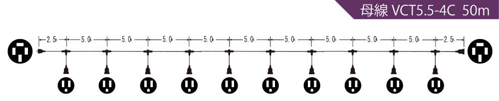 間隔、長さ、電線太さ、電源取り出し数等、使用状況に合わせて作成することが可能です。