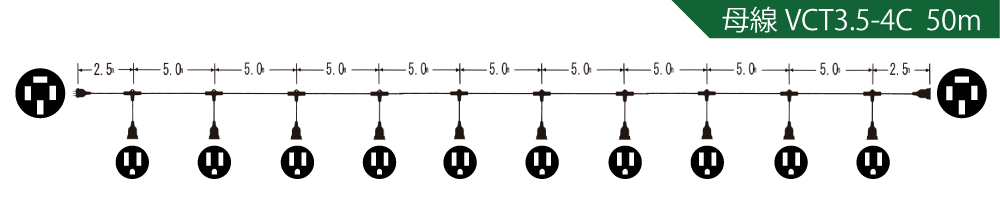 間隔、長さ、電線太さ、電源取り出し数等、使用状況に合わせて作成することが可能です。