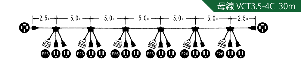 間隔、長さ、電線太さ、電源取り出し数等、使用状況に合わせて作成することが可能です。