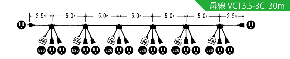 間隔、長さ、電線太さ、電源取り出し数等、使用状況に合わせて作成することが可能です。