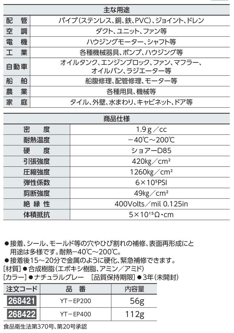 材質 合成樹脂(エポキシ樹脂、アミン/アミド) 内容量 56g カラー ナチュラルグレー 品質保持期限 3年(未開封)