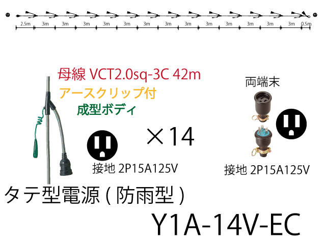 | Y1A-14V-EC | 42 | 2.0sq-3C | 0.25 | 2.0sq-3C | 14 | 14 | 接地2P15A | ||