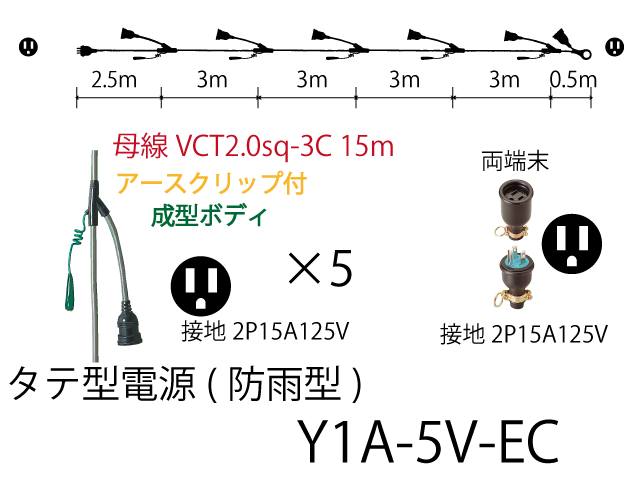 | Y1A-5V-EC | 15 | 2.0sq-3C | 0.25 | 2.0sq-3C | 5 | 5 | 接地2P15A | ||