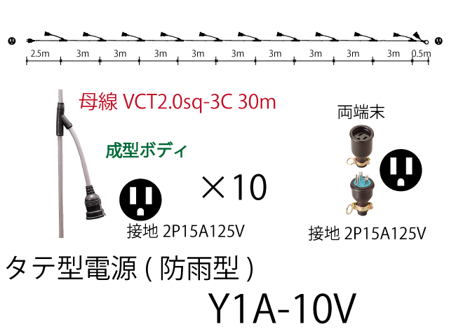 | Y1A-10V | 30 | 2.0sq-3C | 0.25 | 2.0sq-3C | 10 | 0 | 接地2P15A | ||