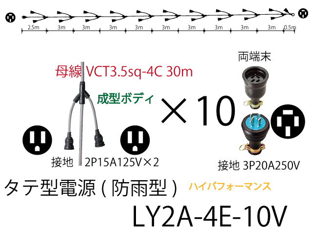 | Y2A-3E-10V | 30 | 3.5sq-3C | 0.25 | 2.0sq-3C | 20 | 接地2P15A | ||