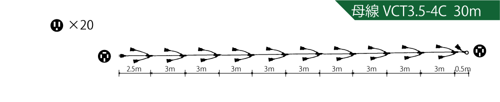 | 長さ(m) | 使用電線 | 長さ(m) | 使用電線 | (数) | 標準 プラグ 形状 |