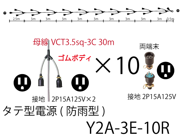 | Y2A-3E-10R | 30 | 3.5sq-3C | 0.25 | 2.0sq-3C | 20 | 接地2P15A | ||