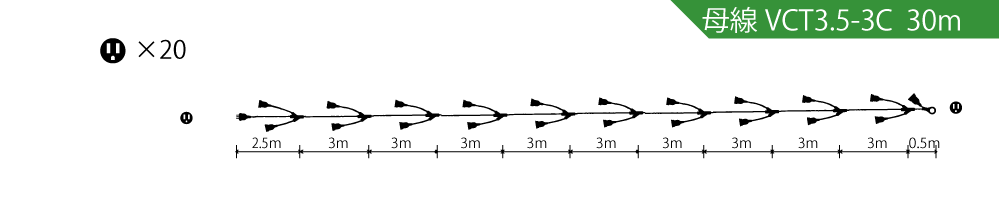 | 長さ(m) | 使用電線 | 長さ(m) | 使用電線 | (数) | 標準 プラグ 形状 |
