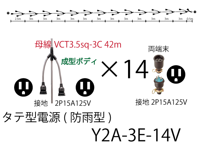| Y2A-3E-14V | 42 | 3.5sq-3C | 0.25 | 2.0sq-3C | 28 | 接地2P15A | ||